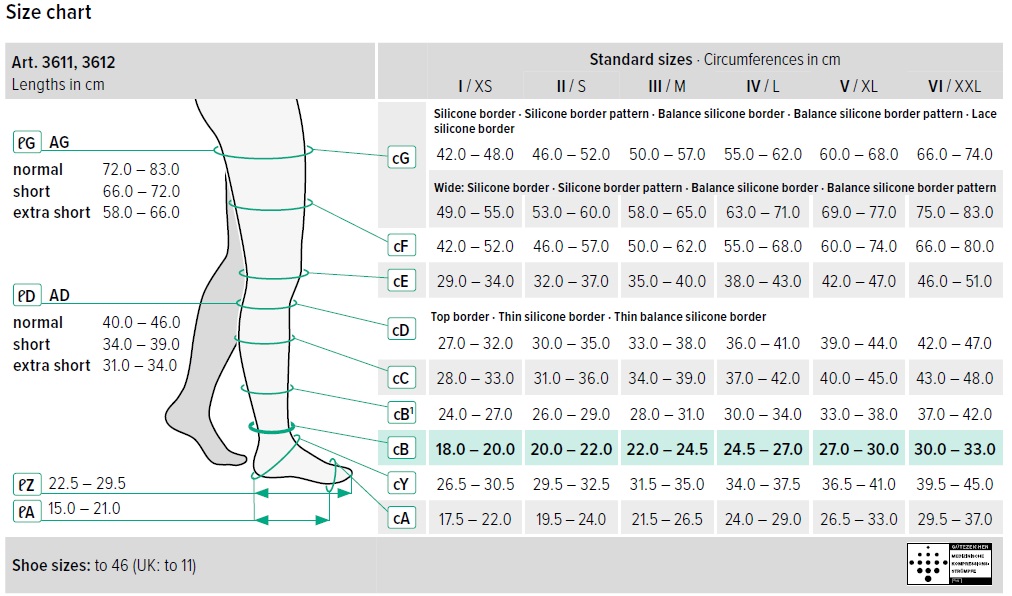 - Gwarancja: 6 miesięcy (oznacza, że wyrób utrzymuje pełny stopniowany ucisk przez okres minimum 6 miesięcy przy codziennym stosowaniu z zachowaniem właściwych zasad użytkowania)