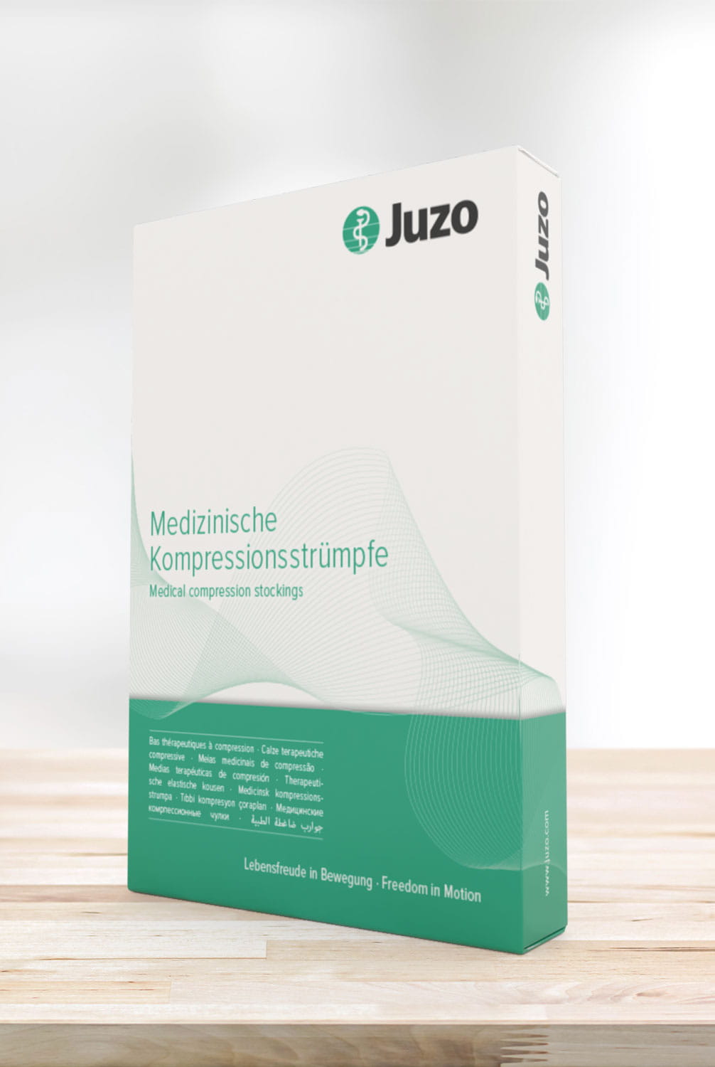 Pieczęć jakości RAL: Wszystkie medyczne pończochy kompresyjne JUZO są zgodne z odpowiednią normą RAL, zapewniając ich bezpieczeństwo i skuteczność w użyciu.
