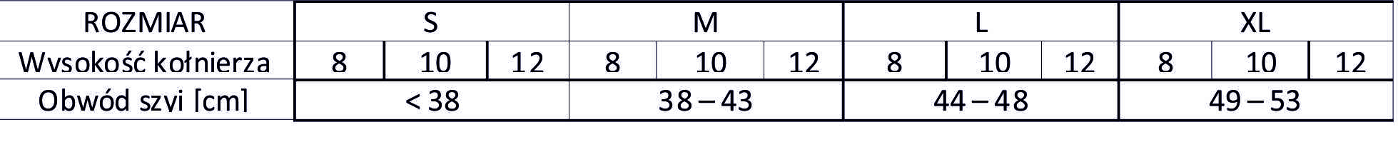 Tabela rozmiarów: