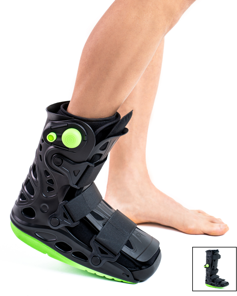 Orteza MaleoWalker Air+ to wyrób stanowiący doskonałą stabilizację i komfort dla wsparcia stawu skokowego oraz goleni. To wyrób bardzo zaawansowany w konstrukcji, który dzięki zastosowaniu technologii pneumatycznej zapewnia wsparcie dla podudzia, system napowietrzny umożliwia indywidualne dopasowanie nacisku i stabilizacji stopy, niweluje obrzęk, a dzięki dodatkowym wkładkom daje możliwość dodatkowego dopasowania wewnątrz ortezy, co przedkłada się na maksymalną redukcję odczucia bólu. Wypełnienie ortezy z przewiewnego i oddychającego materiału z systemem CoolMax daje maksymalną ochronę skóry podczas terapii.