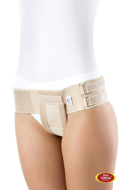 Jednostronny pas pachwinowy Pani Teresa Medica to produkt medyczny do wsparcia i pełnej stabilizacji przepukliny pachwinowej u kobiet. Wyrób jest komfortowy, jego ergonomiczne dopasowanie dobrze maskuje się pod odzieżą wierzchnią, a dzięki regulowanemu zapięciu na rzep zapewnia indywidualne dopasowanie i względną wygodę.