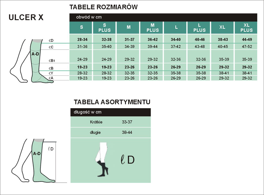 Komplet ULCER X składa się z opatentowanych (EP 1613 256 81) podkolanówek zakładanych pod spód podkolanówki z serii Traditional w 2 klasie ucisku (23-32 mmHg), która jest wymieniana w licznych badaniach klinicznych jako produkt pierwszego wyboru lekarskiego.